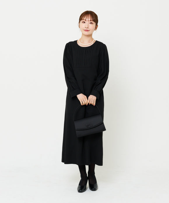 切り替えプリーツロングドレス